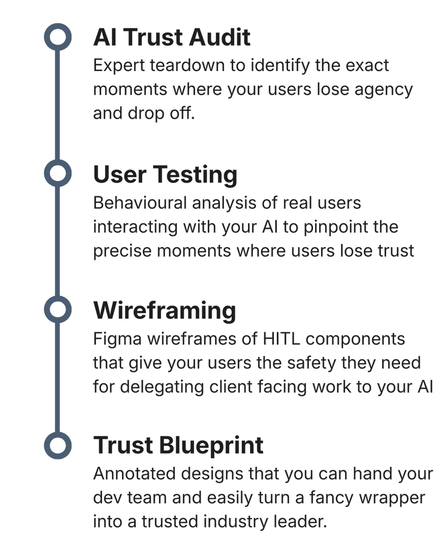 Vibe coding has turned software into a commodity. Competitors can now build an MVP in a weekend, flooding every niche with micro-SaaS alternatives. In this world of infinite software, you no longer compete on features; you compete on User Experience.On top of that, because we’re moving towards AI Agents that do the work for us, onboarding is no longer about teaching a user where to click—it’s about solving the UX nightmare of: "What context do I give this agent?" and "How do I trust it to do the work?".I call this Time-to-Trust.To top it all off, users can migrate their data to another platform with AI at almost zero switching costs. So, if a user doesn’t activate and trust your tool within the first 10 minutes, they’ll leave or even vibe code their own tool.So, if your onboarding is a friction-point, you’re a commodity. If it’s a seamless handshake between human and agent, you own the niche.I build the handshakes that prevent category leaders from becoming commodities.