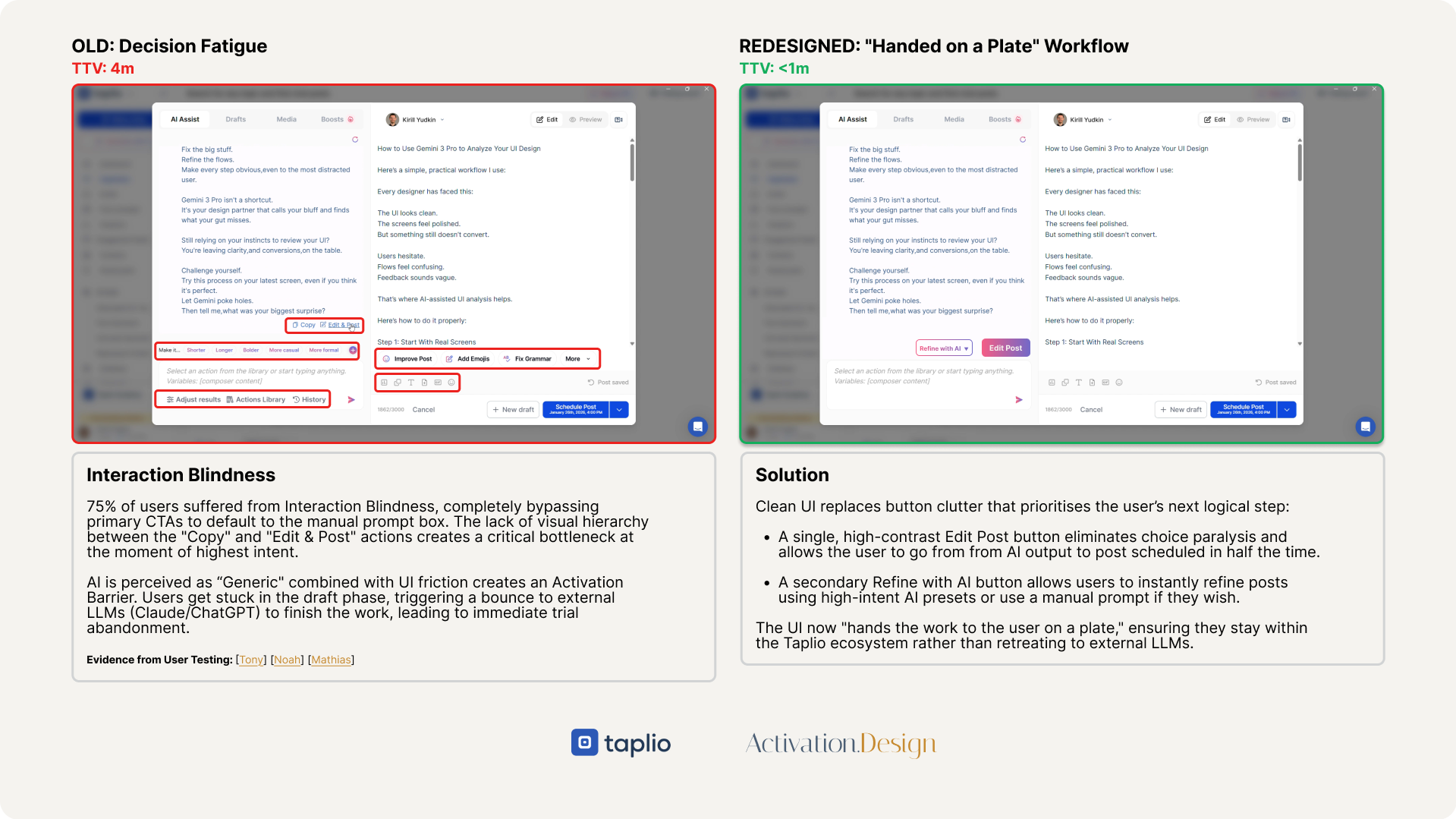 Now, I focus on improving onboarding for Sales SaaS. I do this through genuine user testing with hand-picked sales pros and my library of battle-tested design patters.